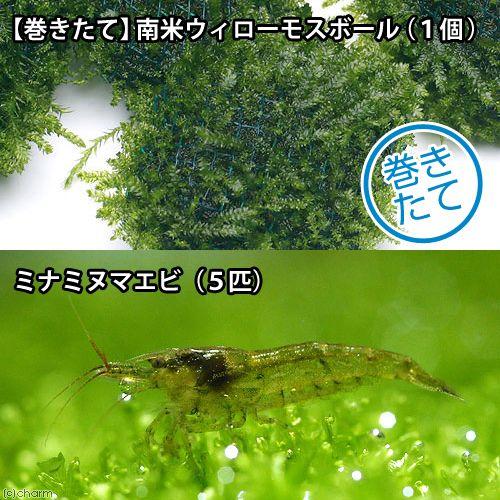 Amazon エビ 水草 ミナミヌマエビ 5匹 巻きたて ウィローモスボール 1個 北海道 九州航空便要保温 Charm チャーム 観賞魚 水中生物 通販